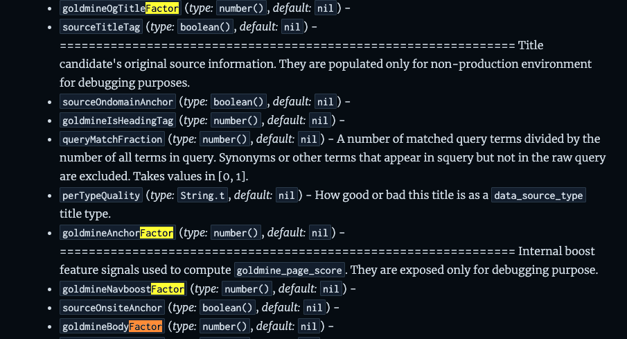 - goldmineTitleTagFactor: Assesses the quality of the title tag source